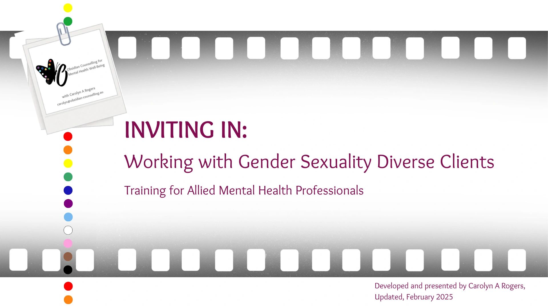 for Allied Mental Health Professionals. For more information email carolyn@obsidian-counselling.au